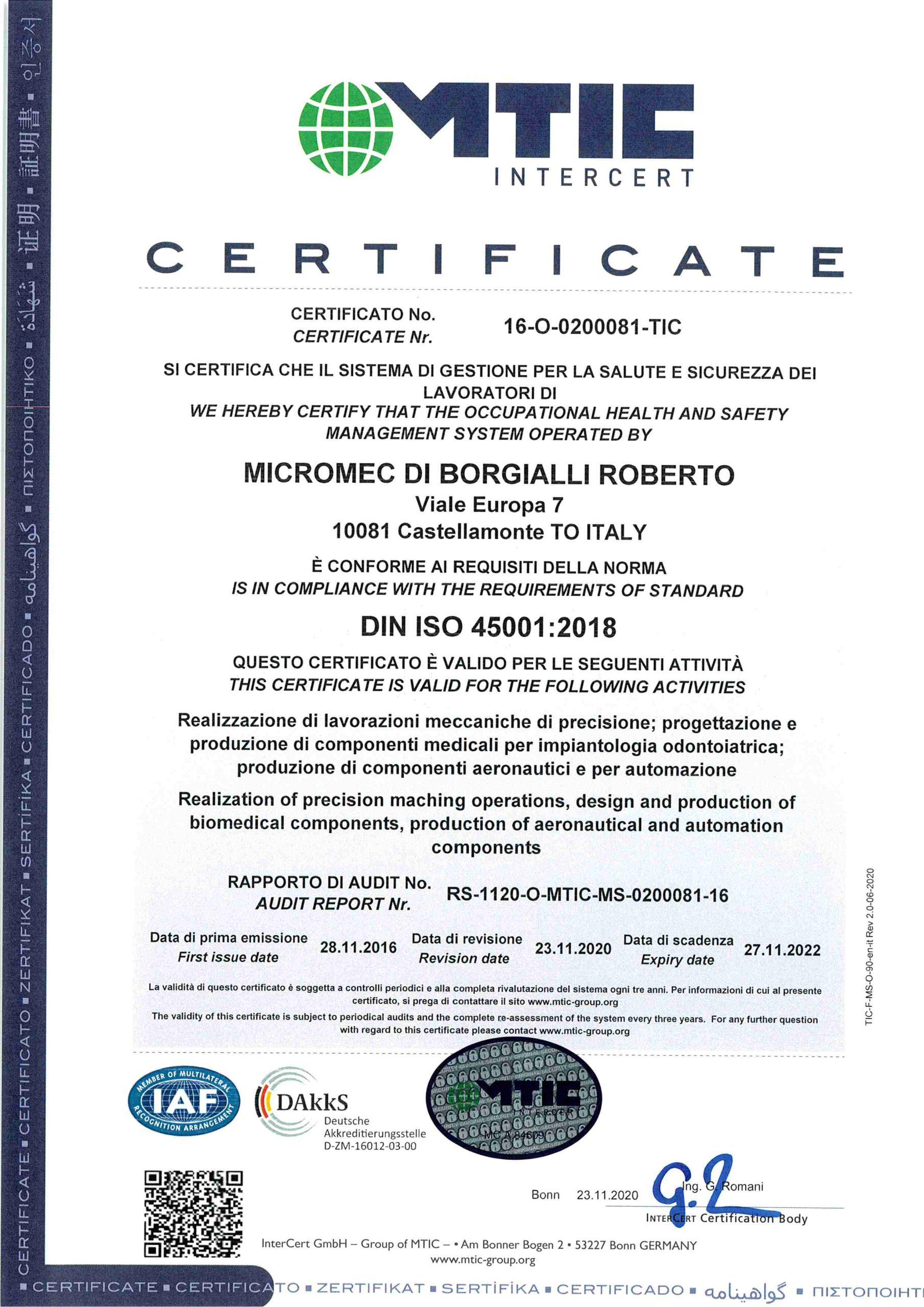 MICROMEC has a certified quality system according to ISO 9001: 2015, ISO 14001: 2015 and ISO 45001:2018.